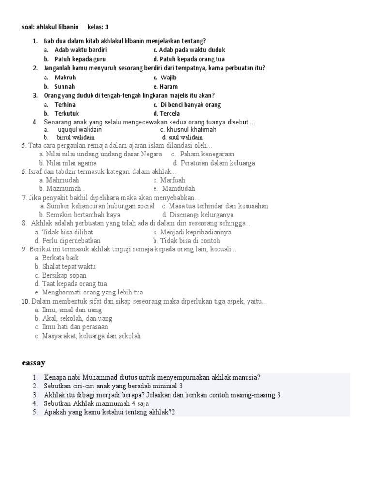IV. Contoh Soal Akidah Akhlak Kelas 5 Semester 2 dan Kunci Jawaban